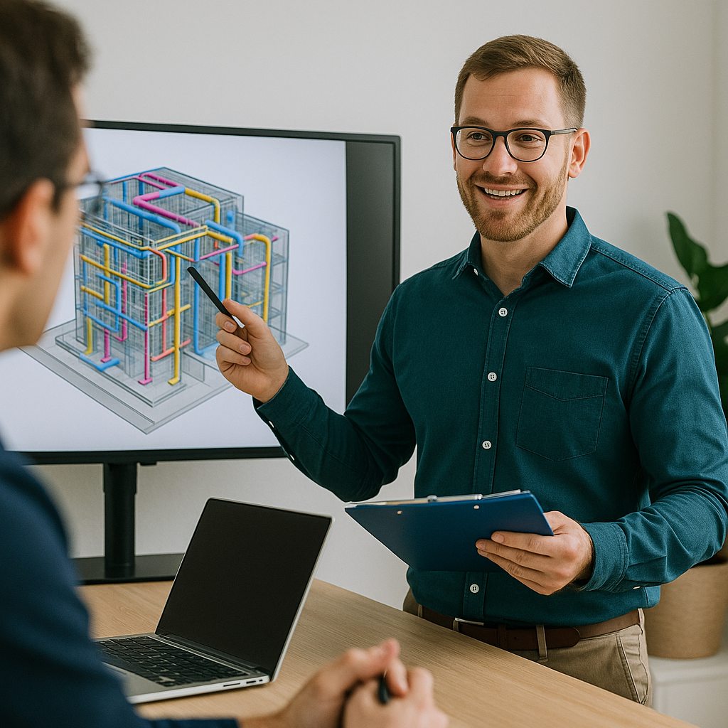 Bij Bimloop begeleiden we grote bedrijven, installateurs en aannemers naar optimaal BIM-gebruik. Met persoonlijke aandacht en alles-in-één service maken wij het verschil.